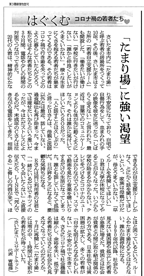 • 「たまり場」に強い渇望 2020.7.30朝日新聞(はぐくむ)