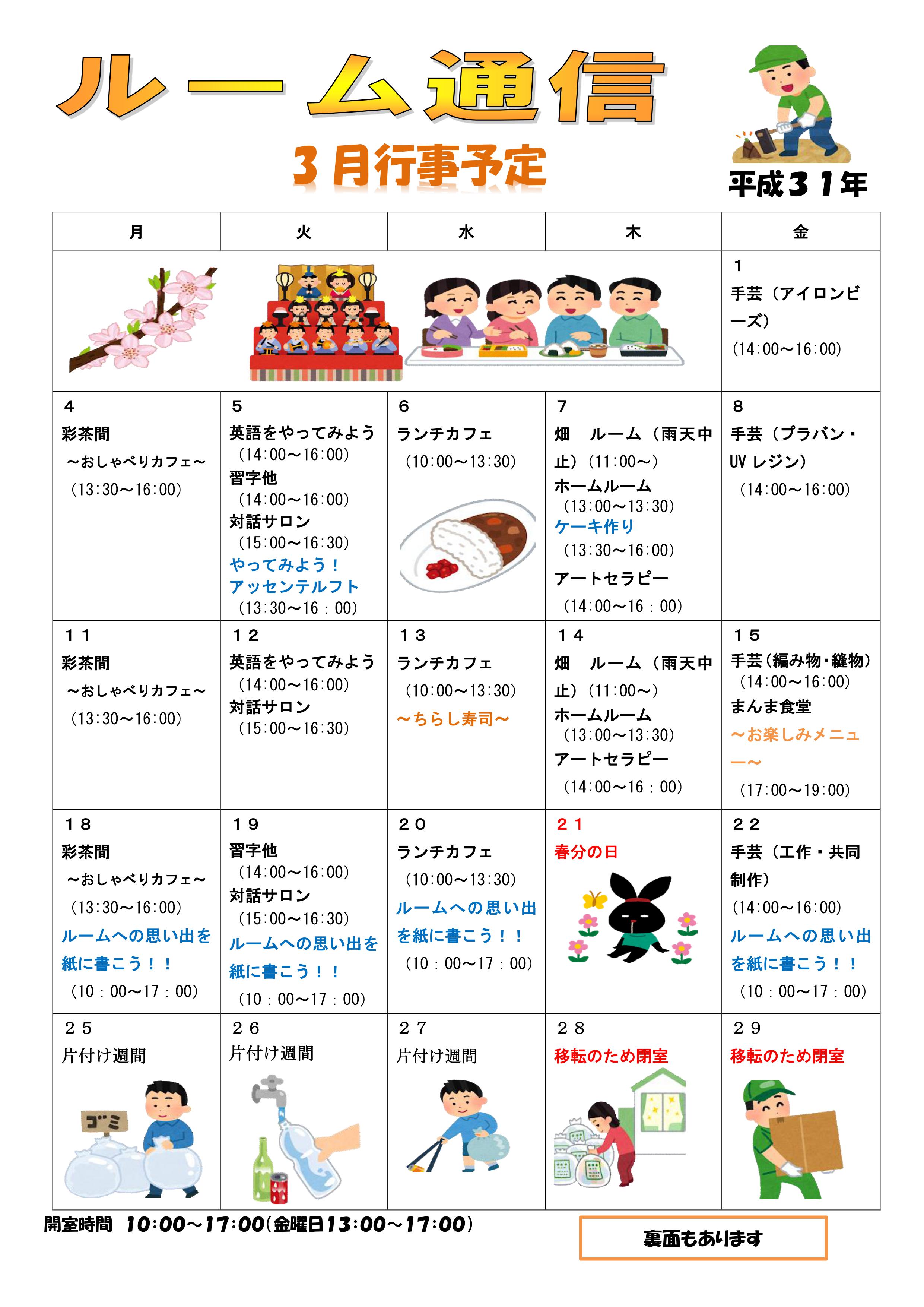 【ルーム】ルーム通信3月号が完成しました。