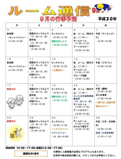 ルーム通信9月号が完成しました。