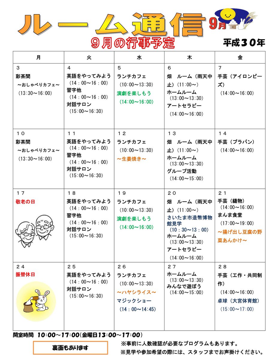 【ルーム】ルーム通信9月号が完成しました。