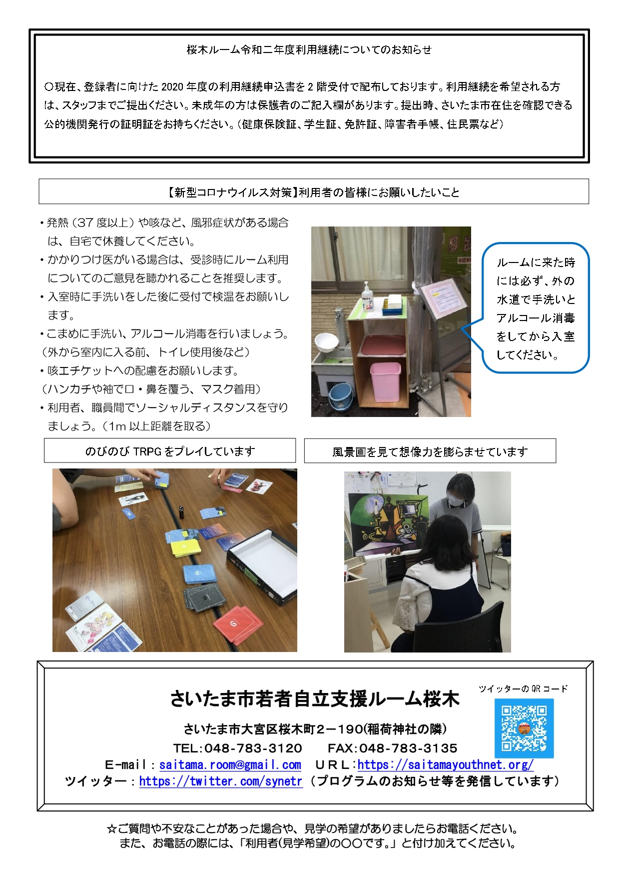 • 若者自立支援ルーム閉室延長のお知らせ【ルーム】
