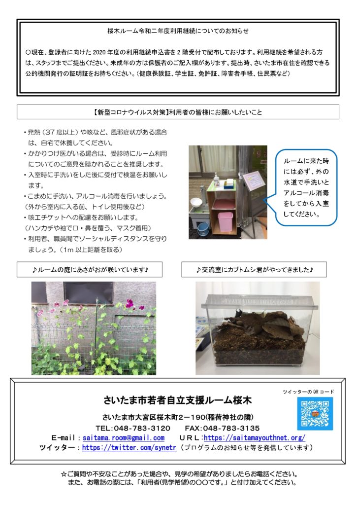 • 【自立支援ルーム】一時閉室についてのお知らせ
