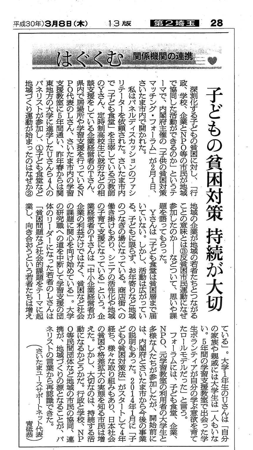 【朝日新聞コラム】子どもの貧困対策 持続が大切(2018.3.08)