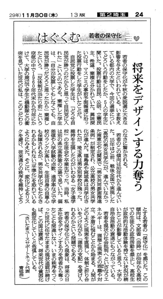 • 【朝日新聞コラム】将来をデザインする力奪う(2017.11.30)