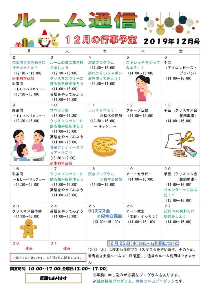 • ルーム通信12月号が完成しました【ルーム】