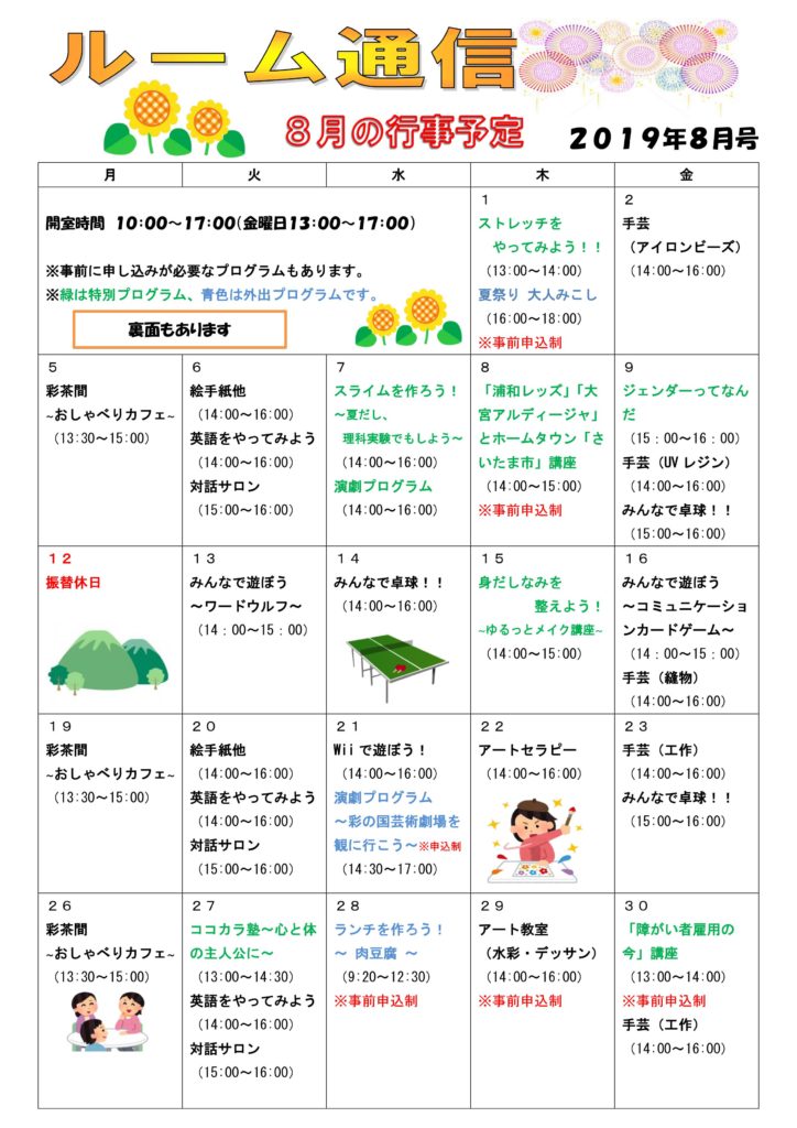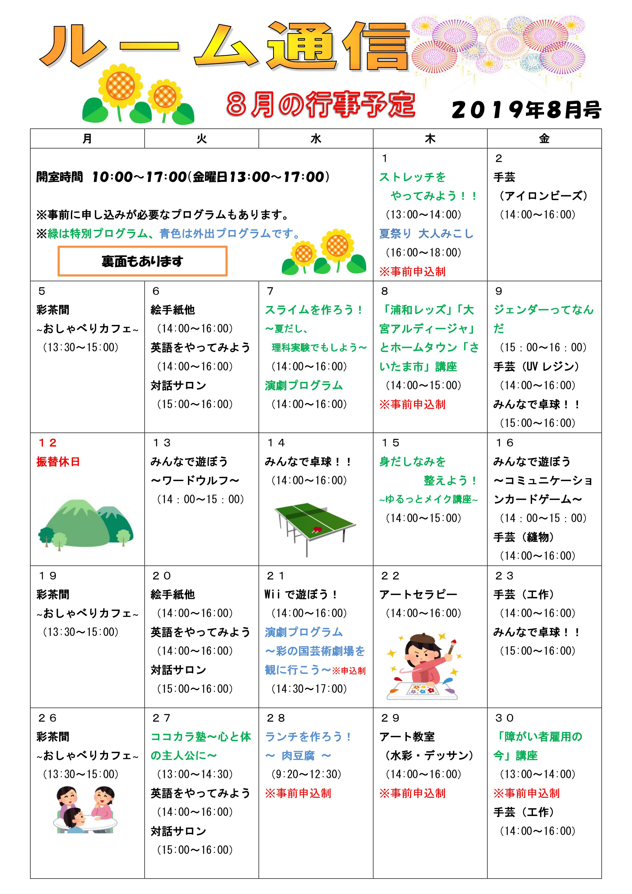 • ルーム通信8月号が完成しました♪