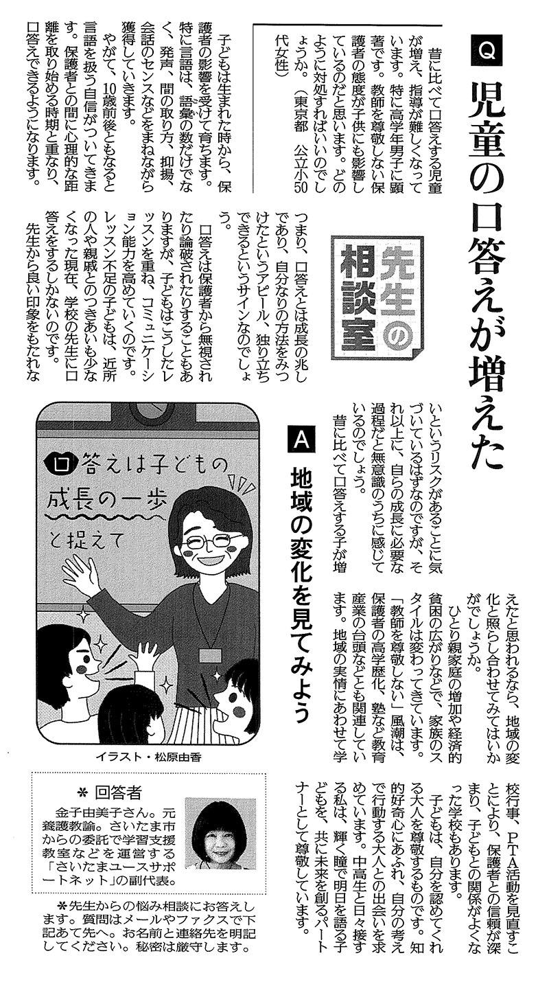 • 先生の相談室: Q児童の口答えが増えた