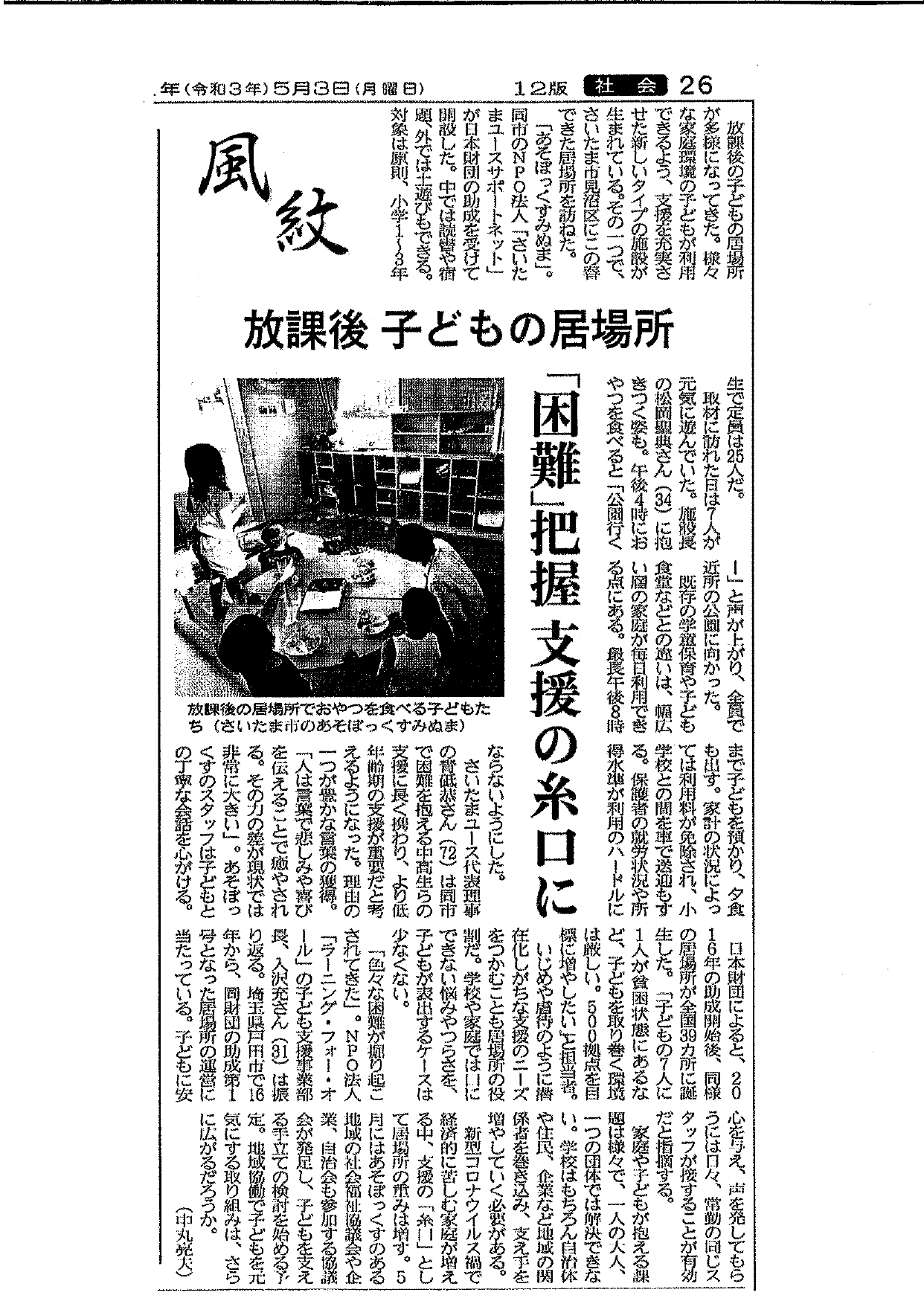 子どもに安心の場を・・・(埼玉新聞_2021.5.3)