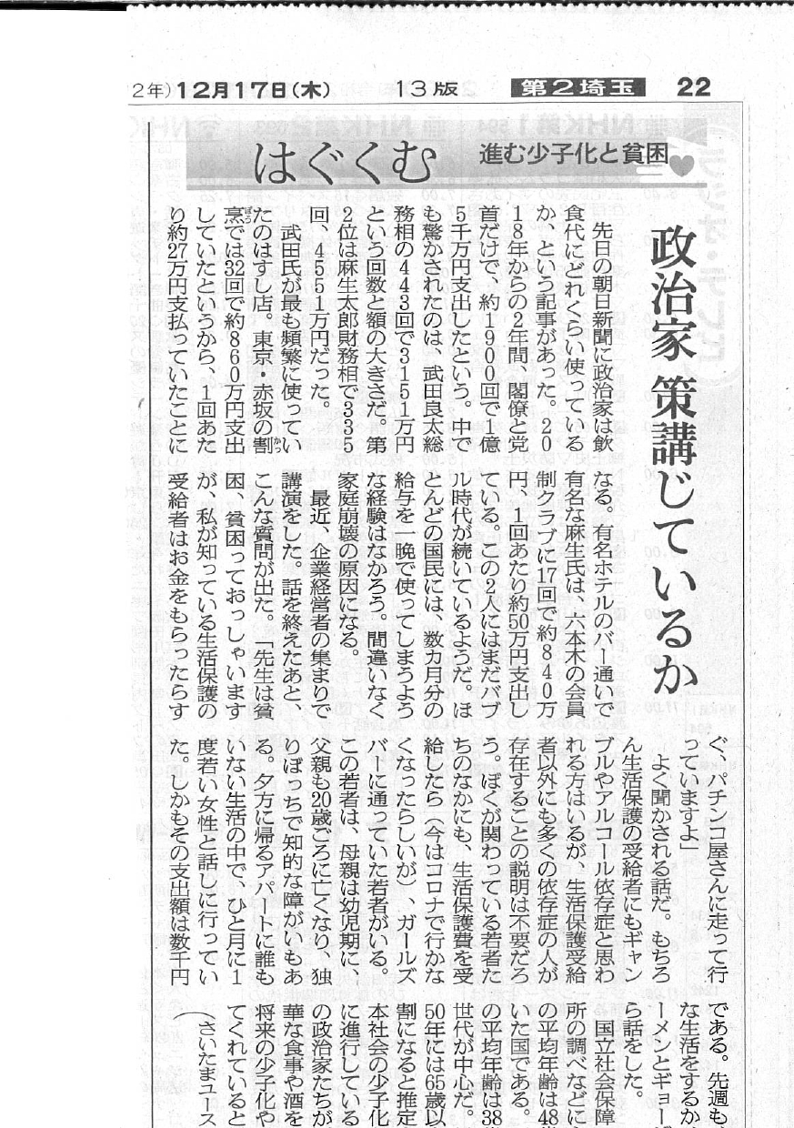 政治家策講じているか(朝日新聞_はぐくむ_2020.12.17)