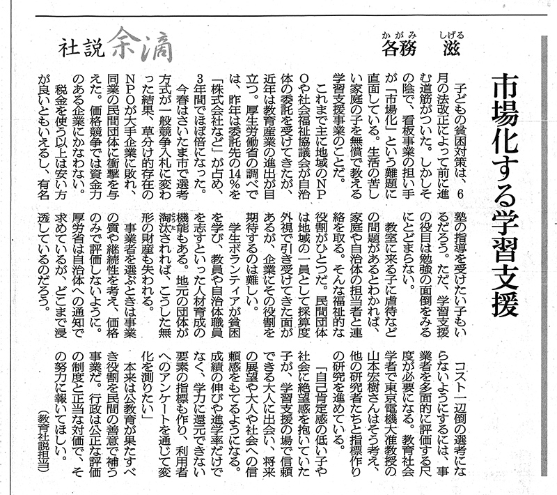 • 【朝日新聞コラム】貧困層の子どもの手助けて(2016.03.29)