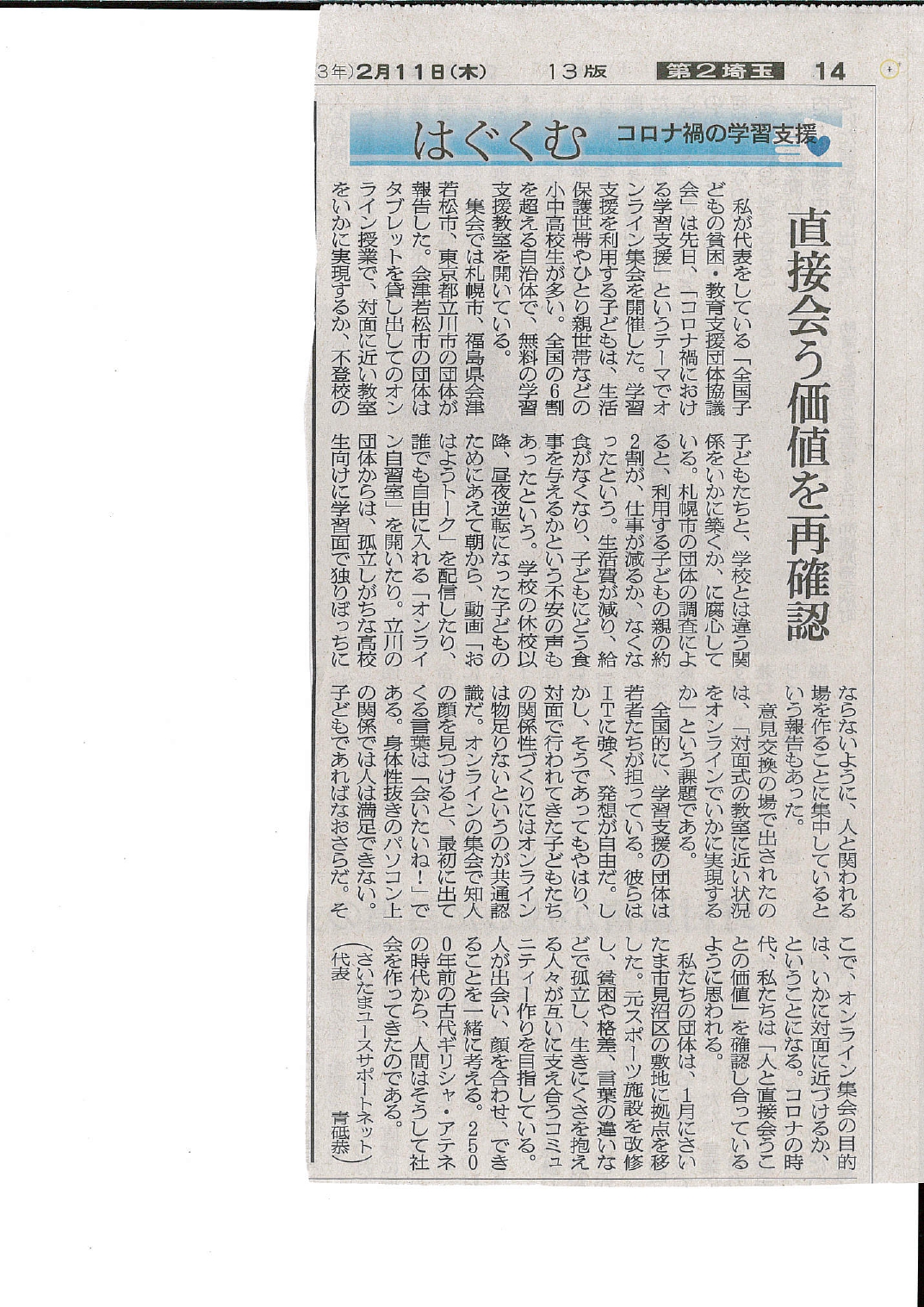 • 直接会う価値を再確認(朝日新聞_はぐくむ_2021.2.11)