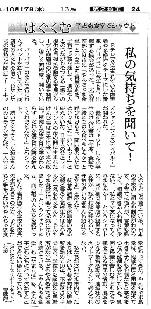 • 私の気持ちをきいて!(朝日新聞_はぐくむ_20191017)