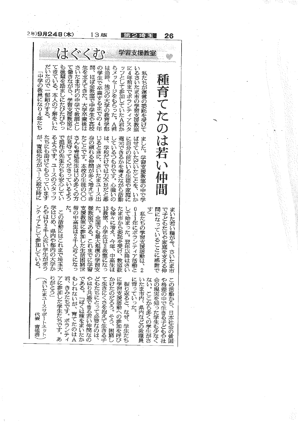 • 【埼玉新聞】孤立した若者に居場所(2013.08.20)